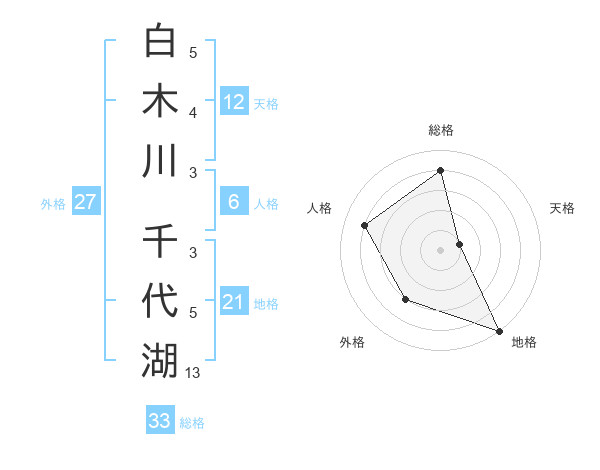 白木川 千代湖さんの総格は33画の4点!