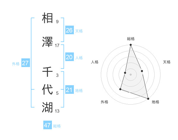 相澤 千代湖さんを姓名の画数から五運を鑑定