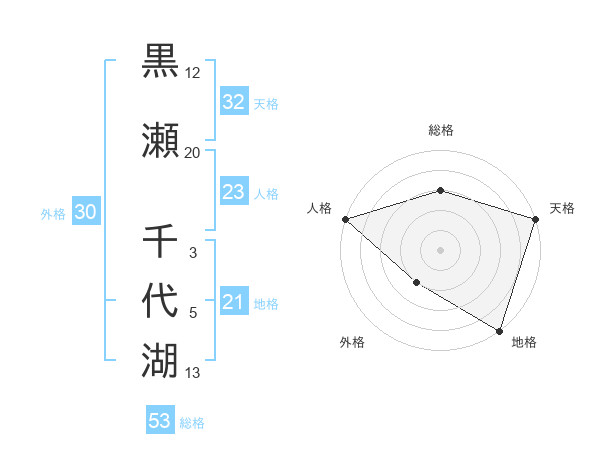 黒瀬 千代湖さんの総格は53画の3点!