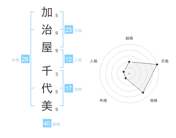 加治屋 千代美さんを姓名の画数から五運を鑑定