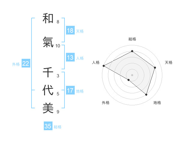 和氣 千代美さんを姓名の画数から五運を鑑定
