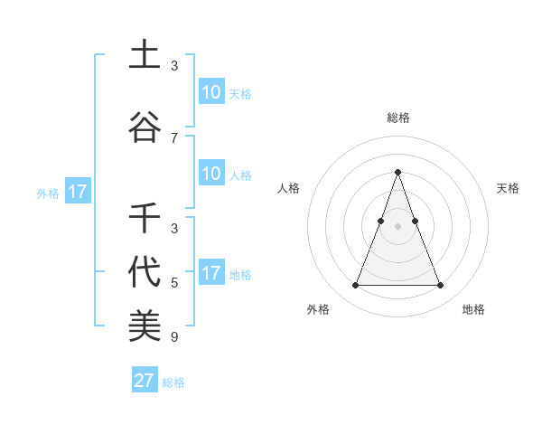 土谷 千代美さんを姓名の画数から五運を鑑定