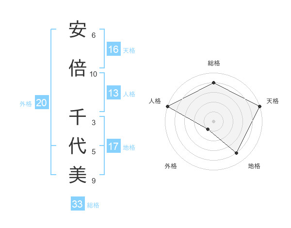 安倍 千代美さんを姓名の画数から五運を鑑定