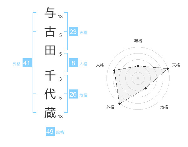 与古田 千代蔵さんを姓名の画数から五運を鑑定