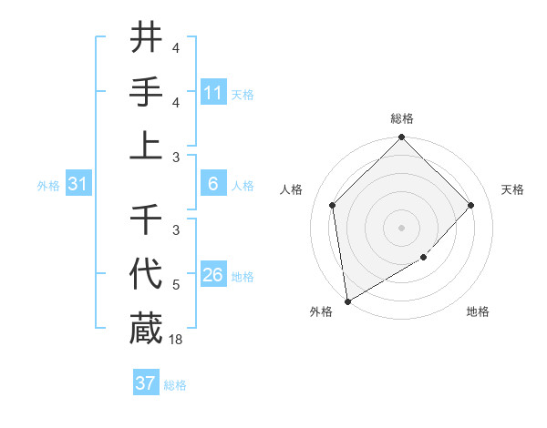 井手上 千代蔵さんを姓名の画数から五運を鑑定