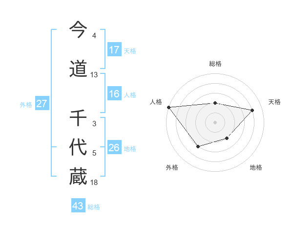 今道 千代蔵さんを姓名の画数から五運を鑑定