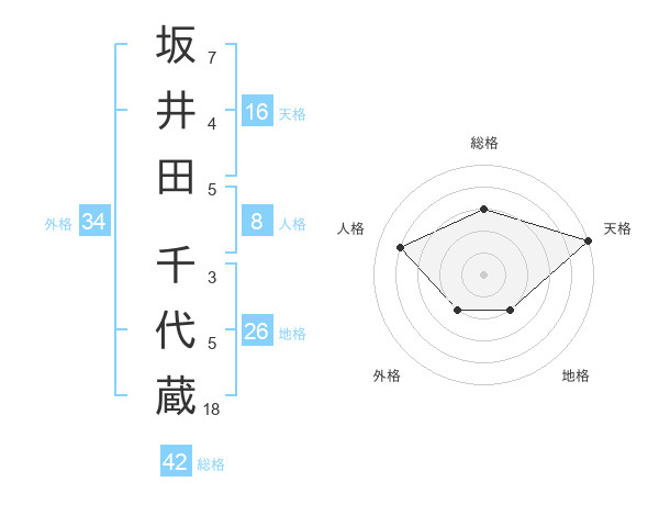 坂井田 千代蔵さんの総格は42画の3点!