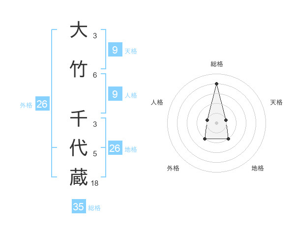 大竹 千代蔵さんを姓名の画数から五運を鑑定