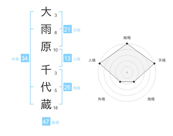 大雨原 千代蔵さんを姓名の画数から五運を鑑定