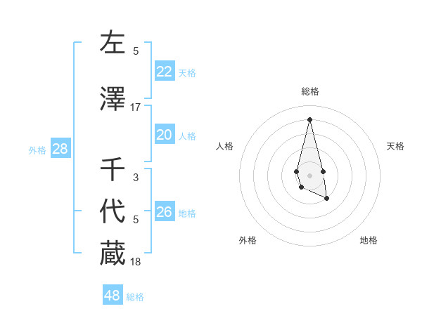 左澤 千代蔵さんを姓名の画数から五運を鑑定