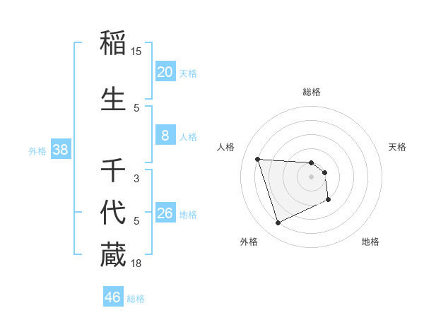 稲生 千代蔵さんを姓名の画数から五運を鑑定