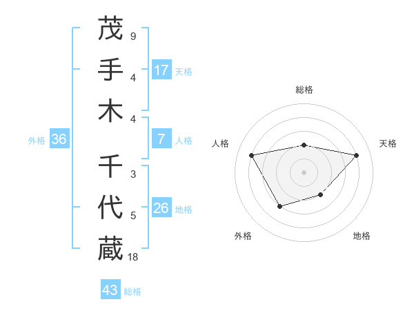 茂手木 千代蔵さんの総格は43画の2点!