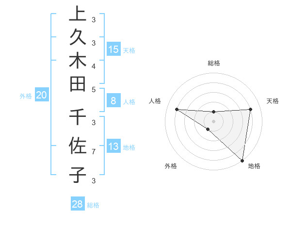 上久木田 千佐子さんを姓名の画数から五運を鑑定