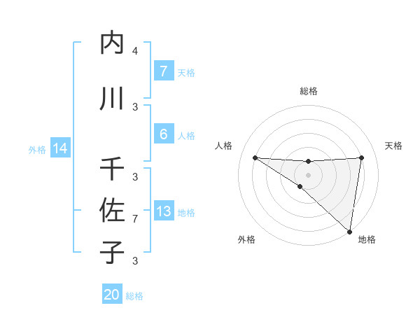 内川 千佐子さんを姓名の画数から五運を鑑定