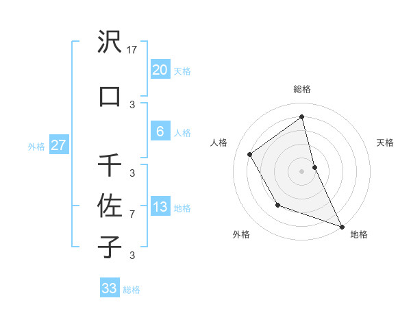沢口 千佐子さんを姓名の画数から五運を鑑定