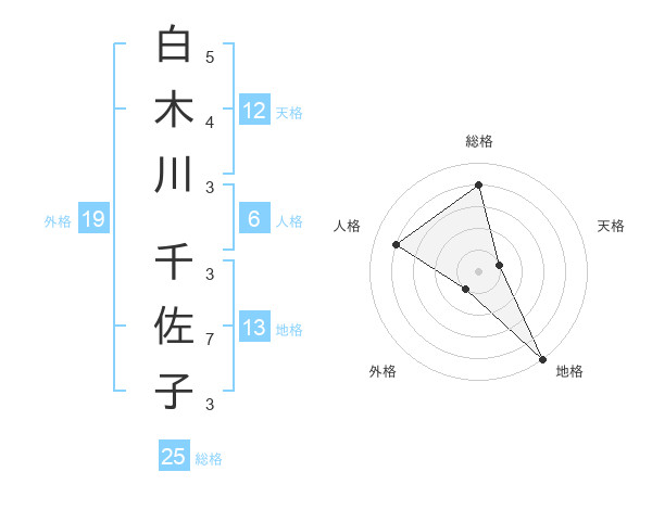 白木川 千佐子さんを姓名の画数から五運を鑑定