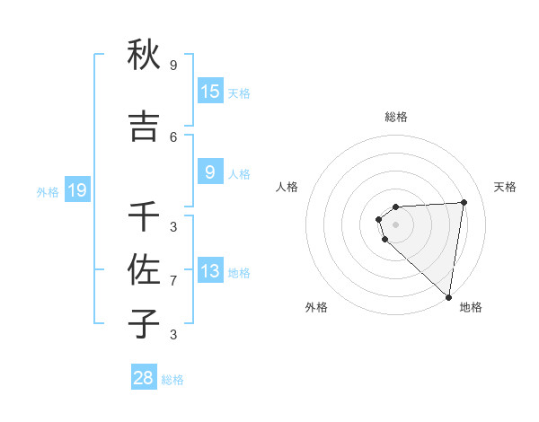 秋吉 千佐子さんの総格は28画の1点!