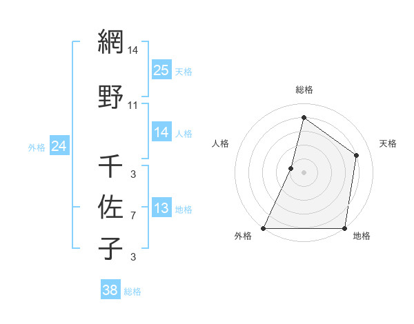 網野 千佐子さんの外格は24画の5点