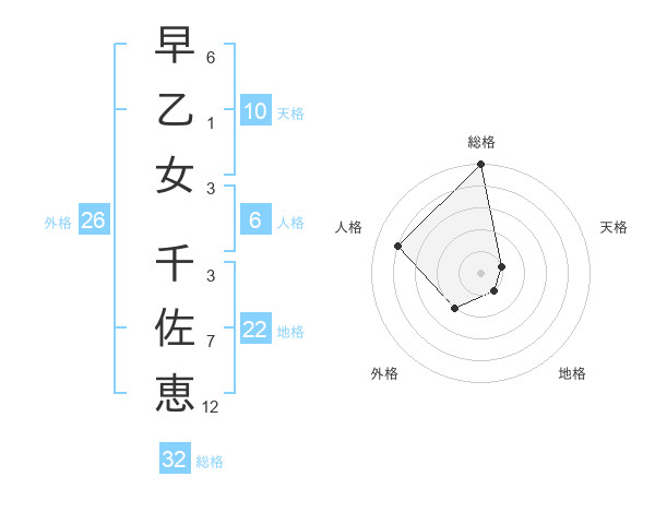 早乙女 千佐恵さんを姓名の画数から五運を鑑定