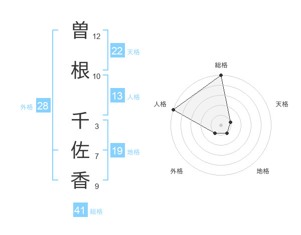 曽根 千佐香さんを姓名の画数から五運を鑑定
