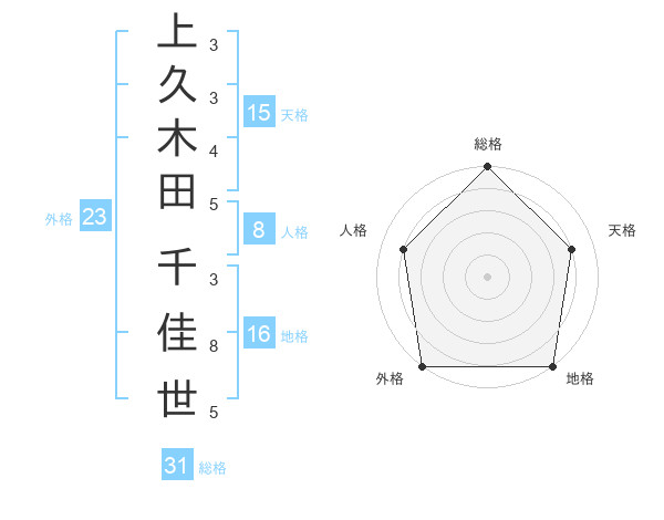 上久木田 千佳世さんの外格は23画の5点!
