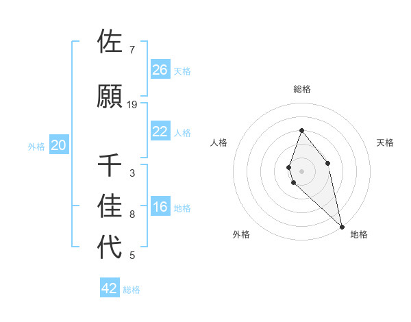 佐願 千佳代さんを姓名の画数から五運を鑑定