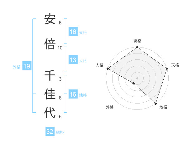 安倍 千佳代さんを姓名の画数から五運を鑑定