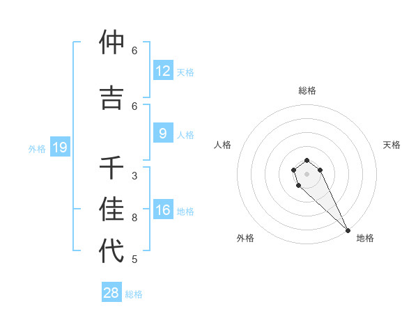 仲吉 千佳代さんの外格は19画の1点