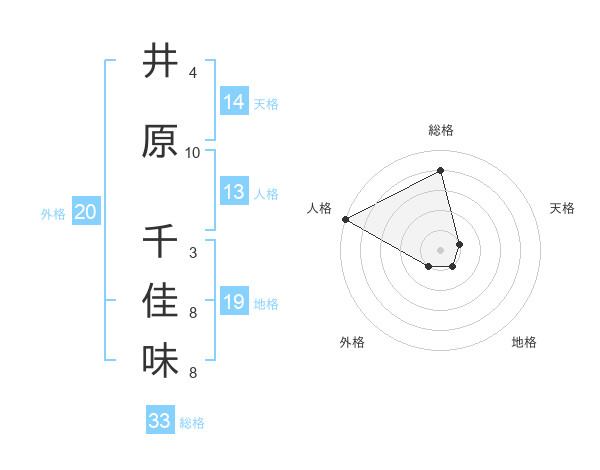 井原 千佳味さんを姓名の画数から五運を鑑定