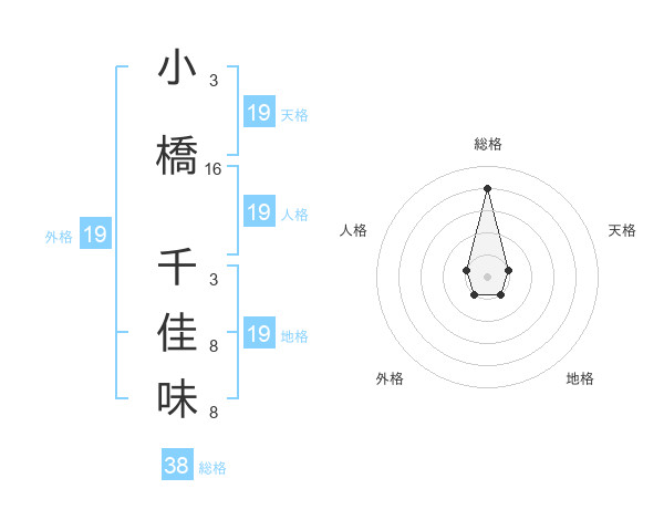 小橋 千佳味さんの総格は38画の4点!