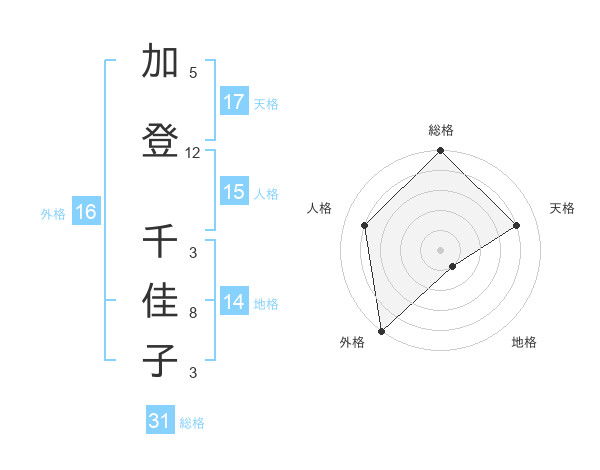 加登 千佳子さんの総格は31画の5点!