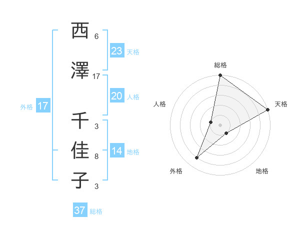 西澤 千佳子さんを姓名の画数から五運を鑑定