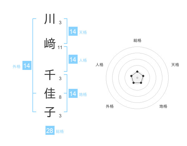 川﨑 千佳子さんを姓名の画数から五運を鑑定