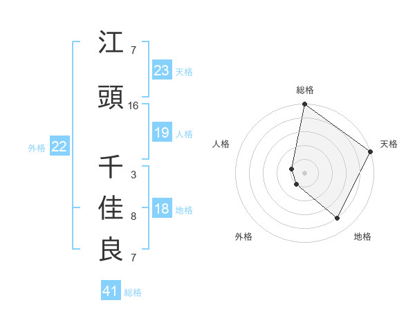 江頭 千佳良さんを姓名の画数から五運を鑑定
