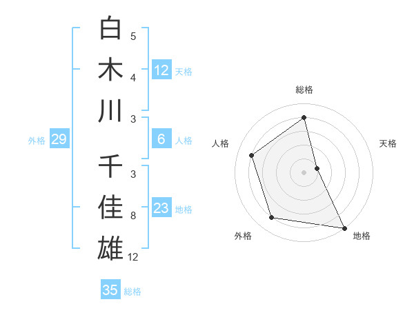 白木川 千佳雄さんを姓名の画数から五運を鑑定