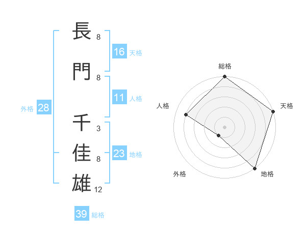 長門 千佳雄さんを姓名の画数から五運を鑑定