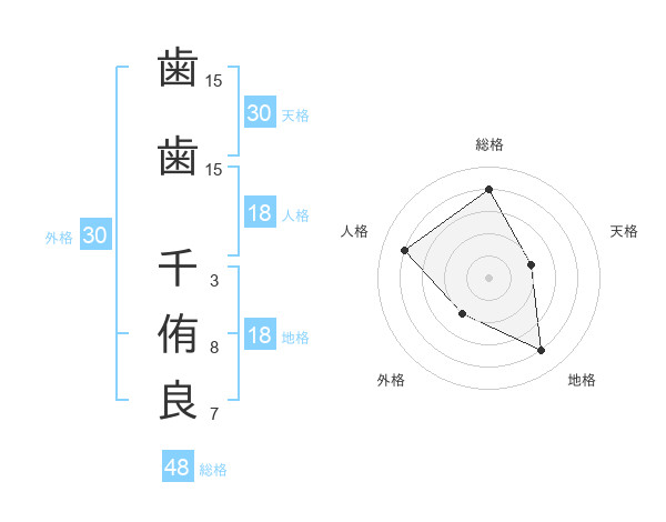 歯歯 千侑良さんの外格は30画の2点!