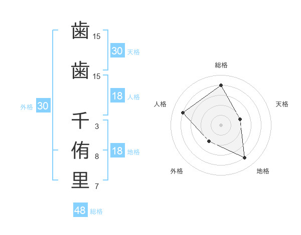 歯歯 千侑里さんを姓名の画数から五運を鑑定