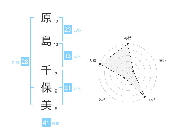 原島 千保美さんの総格は41画の5点!
