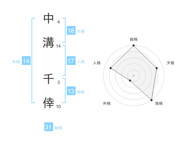 中溝 千倖さんの総格は31画の5点!