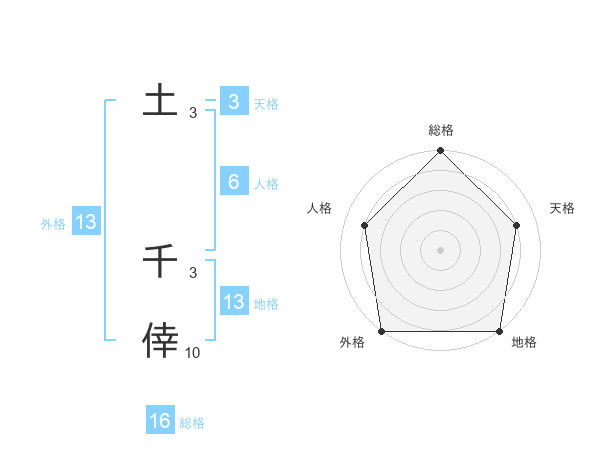 土 千倖さんの外格は13画の5点!