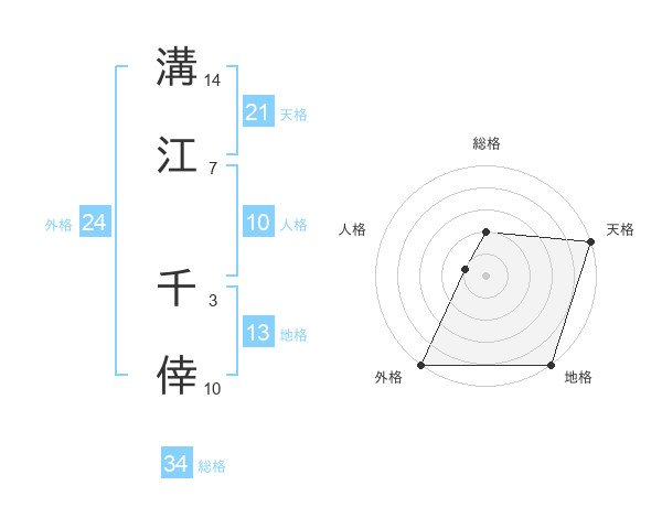 溝江 千倖さんの総格は34画の2点!