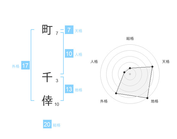 町 千倖さんの総格は20画の1点!