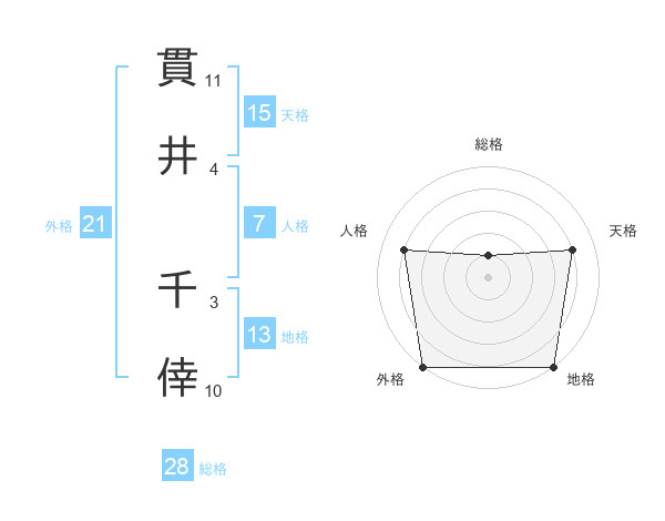 貫井 千倖さんの外格は21画の5点!