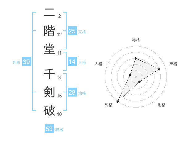 二階堂 千剣破さんを姓名の画数から五運を鑑定