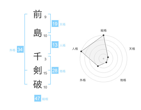 前島 千剣破さんを姓名の画数から五運を鑑定