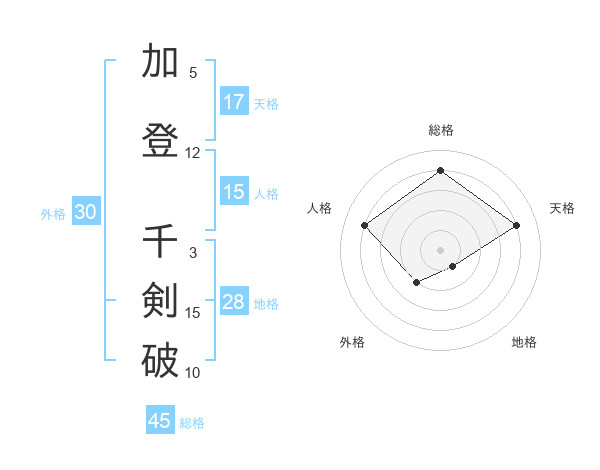 加登 千剣破さんの総格は45画の4点!