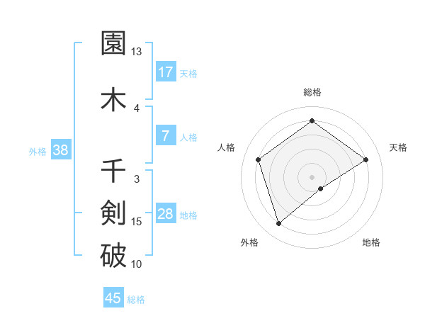 園木 千剣破さんを姓名の画数から五運を鑑定