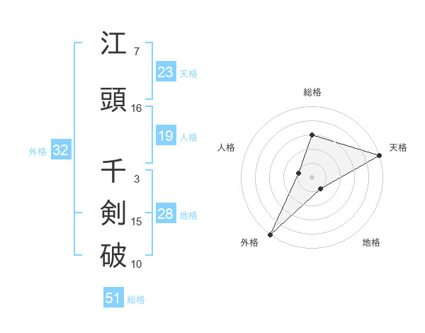 江頭 千剣破さんを姓名の画数から五運を鑑定