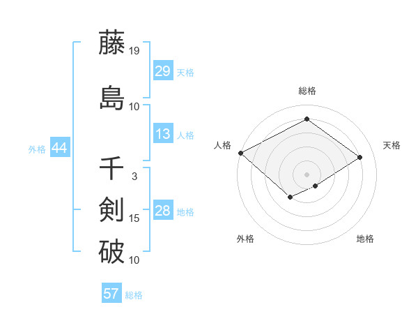 藤島 千剣破さんの外格は44画の2点!